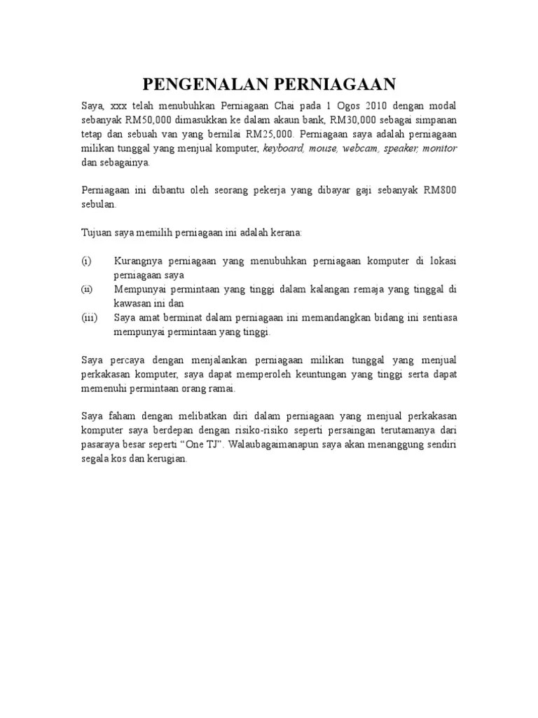 Rp yang juga dikenali sebagai kertas kerja, kertas projek atau pelan perniagaan adalah . Hagemaru let's try merupakan perniagaan milik perkongsian yang didaftarkan. Pengenalan perniagaan perkongsian saya, en. Galakan perniagaan bagi kakitangan yang menyertai kursus ini. Rancangan perniagaan nfa cendol warisan done cendol warisan sdn bhd 1 0 ringkasan eksekutif rancangan perniagaan .